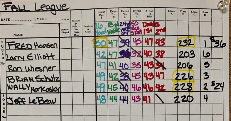 Fall league is now over. Thank you to the shooters that participated. Congratulations Fred Hansen.